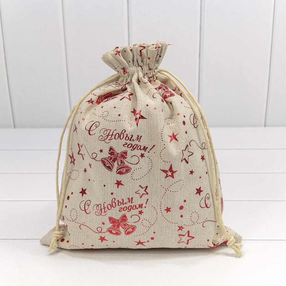 Краткое описание «Мешочки из искусственного льна 26*32 с рисунком С новым годом»