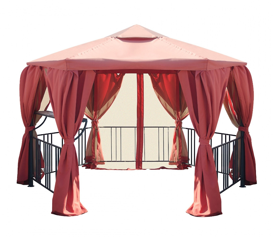 Шторы в комплекте создадут уют и комфорт внутри павильона, обеспечивая приватность и защиту от солнца. Антимоскитная сетка предотвращает проникновение насекомых внутрь павильона, что обеспечивает комфортное времяпрепровождение. Тент, в свою очередь, обеспечивает защиту от непогоды и ультрафиолетовых лучей.